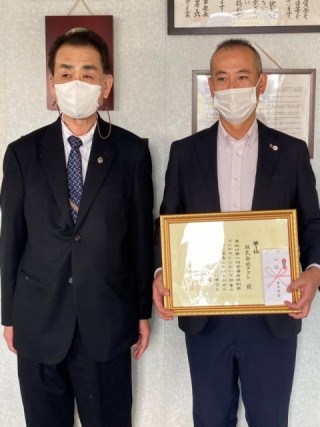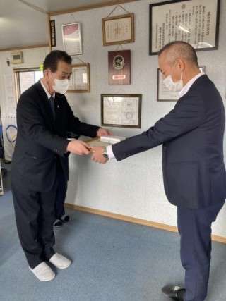 協会長の島田浩二様から、弊社社長の中野知博に直接手渡しされました。
