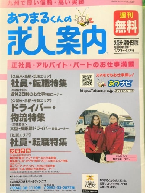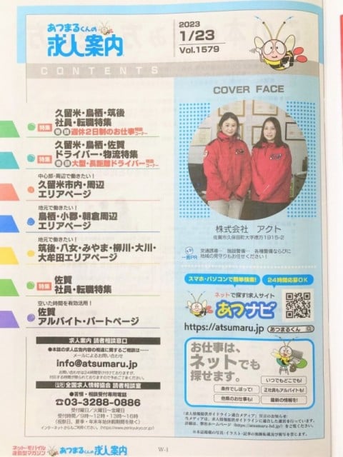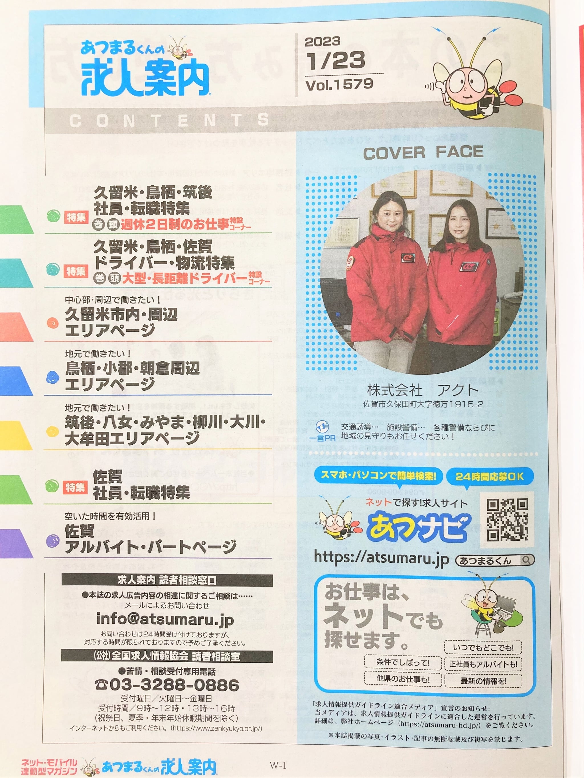 さて、あつまるくんの求人案内(1/23~1/29)の表紙を当社の看板娘!?が飾ることになりました。