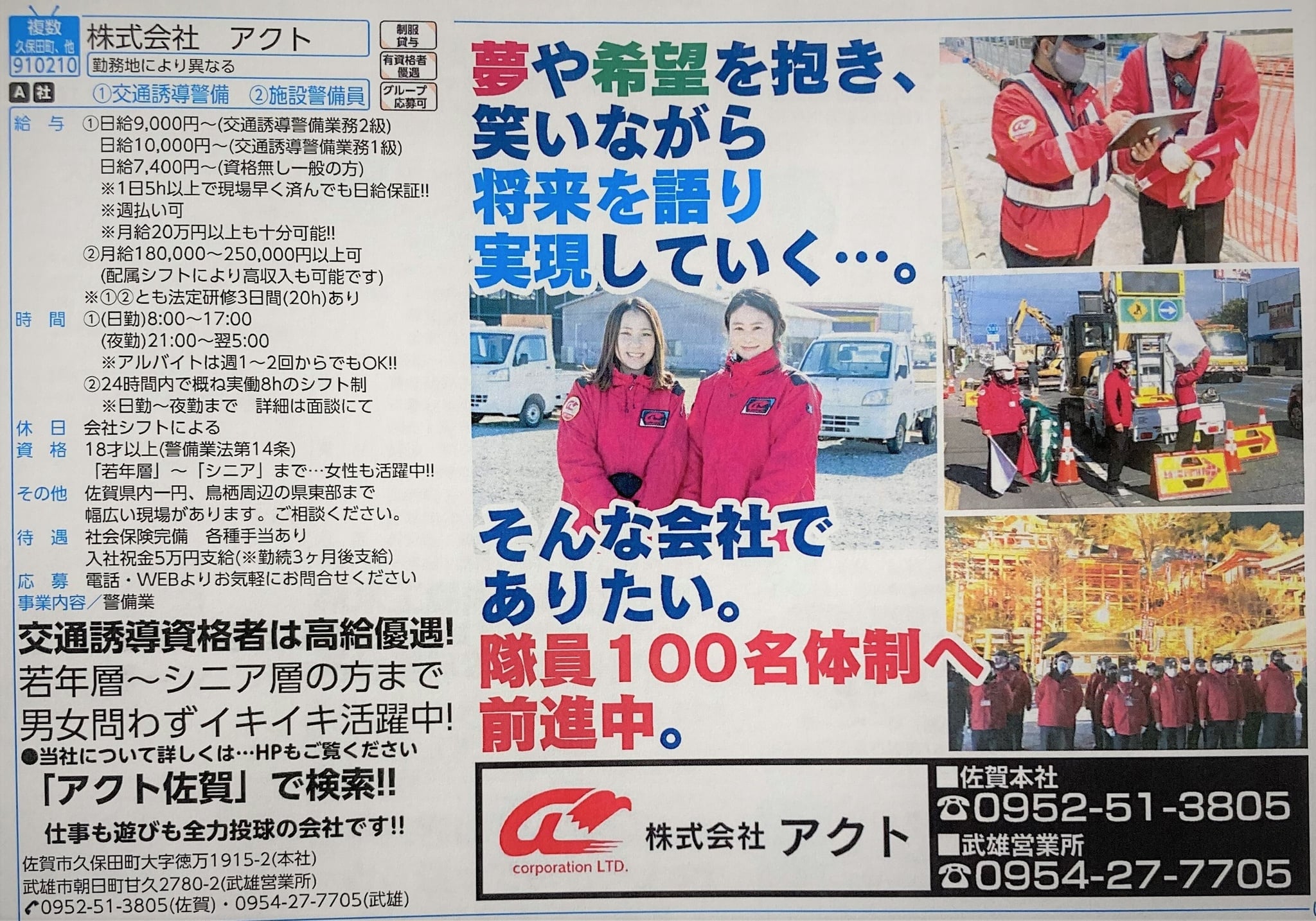 当社のイメージカラーは“赤”です。佐賀県内で赤の制服を見かけたら、それはアクトの警備員です。